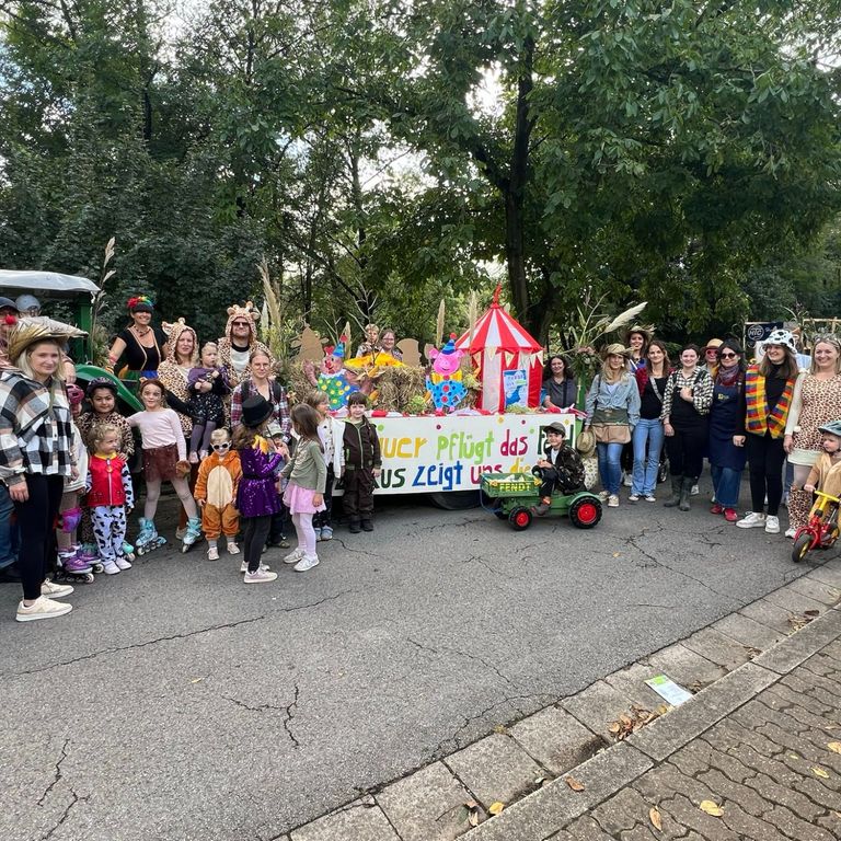 Auch in diesem Jahr beteiligten wir uns wieder mit einem Wagen und einer Fußgruppe am Erntedankumzug unter dem Motto „Der Bauer pflügt das Feld, der Zirkus zeigt uns die Welt“.